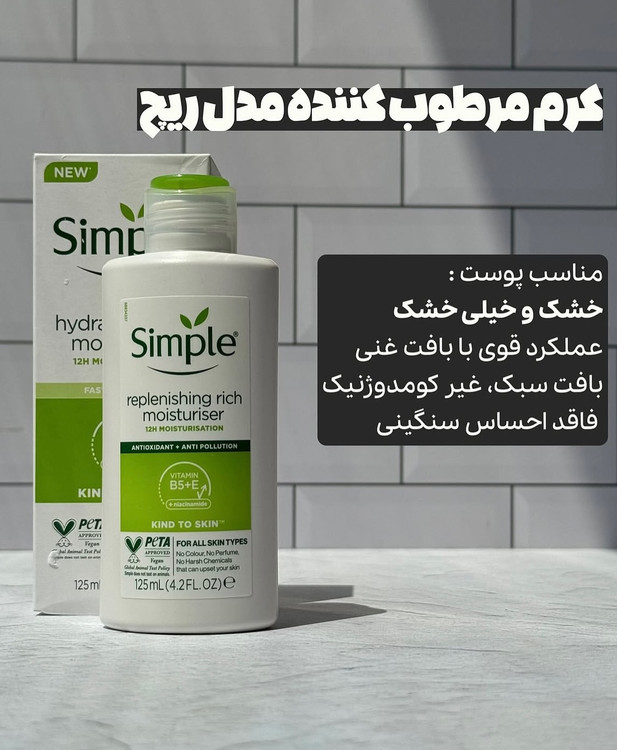 اول تحقیق کن و بعد اعتماد کن مراقبت از يوست به ساده ترين شكل ممكن! با محصولات Simple ديگه نيازى به نگرانى براى تركيبات شيميايي و حساسيت نيست. • بدون عطر و رنگ مصنوعى مناسب براى پوست هاى حساس سبك، ملايم و در عين حال مؤثر . پوستت لايق يه روتين ساده و سالمه!